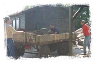 Leden van de Lionsclub schilderen de nieuwe stal. De stal kon gebouwd worden dankzij schenkingen van diverse gulle gevers. De nieuwe stal biedt onder andere plaats aan oude landbouwwerktuigen, geschonken door een boer in ruste. De spullen zijn telkens weer een mooie aanleiding voor gesprekken over hoe het ooit was.